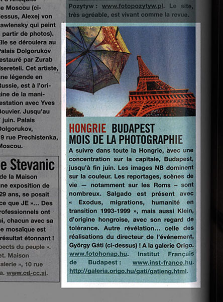 Az egymilliós példányszámban megjelenõ francia PHOTO címû havilap 410-ik számában hírt adott a magyarországi