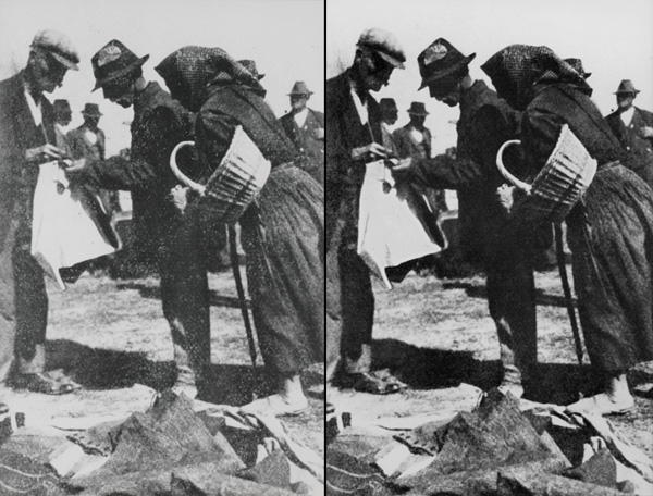 és torzított fotókat adtam ki a kezemből. A fotóra - piros vonalakkal jelezve - rámásoltam az eredetiekből is négyet, hogy